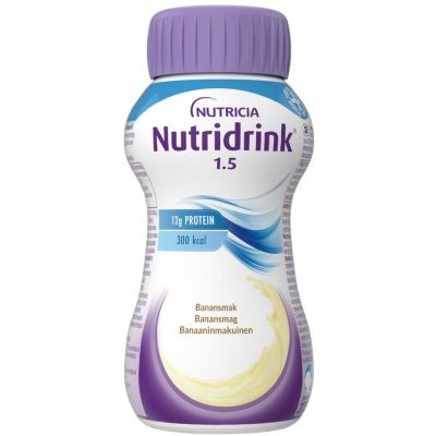Nutridrink fra Nutricia er en komplet, energi- og næringstæt ernæringsdrik, der er udviklet til patienter med sygdomsrelateret underernæring og/eller ved øget behov for energi. Hver flaske indeholder 300 kcal og 12 g protein og dækker dermed et højt energibehov i et lille volumen.