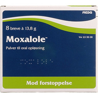 Moxalole til voksne opløses i et halvt glas vand (1,5 dl) og drikkes umiddelbart efter. Det er pakket i enkeltdoseringsbreve, og et brev er en dosis. Den afføringen virkning ses sædvanligvis efter 12-24 timer.