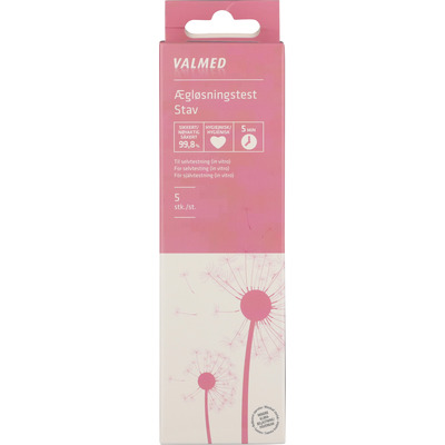 ValMeds ægløsningstest til hjemmebrug er mere end 99,8% sikker. Testen måler tilstedeværelsen af hormonet LH (lutein hormon). Ægløsningstesten kan med stor nøjagtighed påvise, hvilke dage du har størst chance for at blive gravid. Testen er let at bruge og aflæse - og resultatet er klar allerede efter 5 minutter.