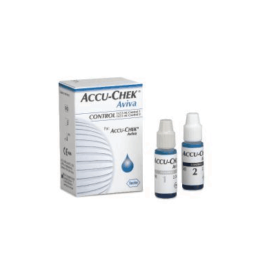 Kontrolvæskerne (2x 2,5ml) bruges til at udføre kvalitetskontrol på dit Accu-Chek Aviva blodsukkerapparat.