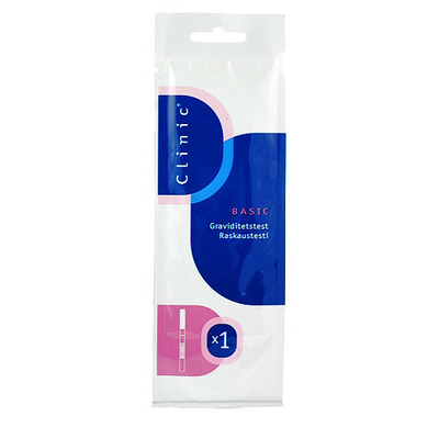 Clinics Basic Graviditetstest fortæller dig allerede fra den første dag menstruationen udebliver, hvorvidt du er blevet gravid. Testen er i strips-form og er nem at bruge til en hurtig hjemmetest.