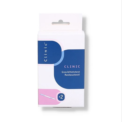 Her får du fra Clinic 2 stk. graviditetstests i strip-form, hvortil der medfølger en kop, så testningsprocessen er gjort nemmere for dig.