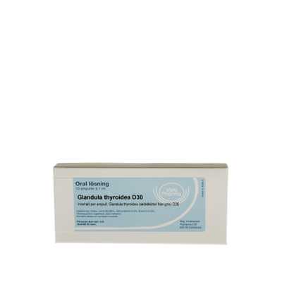 Glandula thyroidea D30 er et håndpotenseret homøopatisk lægemiddel som indeholder aktivstoffer i stærkt fortyndet og bearbejdet form.