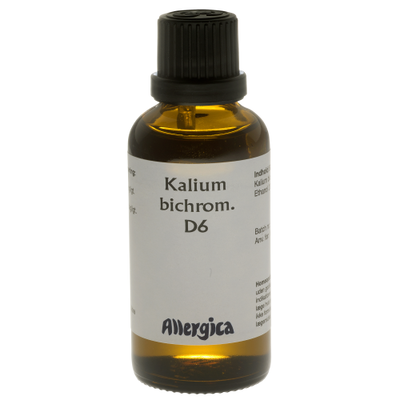 Kalium bichrom. D6 er et håndpotenseret homøopatisk lægemiddel, som indeholder aktivstoffer i stærkt fortyndet og bearbejdet form.