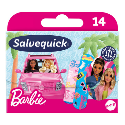 Salvequick Barbie plastre er velegnede til mindre sår og hudafskrabninger i hverdagen. Pakken indeholder 14 plastre i tre forskellige størrelser, herunder Salvequicks ovale form, som passer godt til knæ og albuer. Plastrene er åndbare og latexfri, og de farverige motiver gør dem ekstra populære blandt børn.
