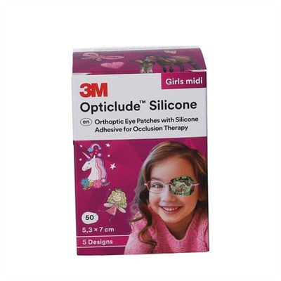Disse skeleplastre fra Opticlude er fremstillet med et blødt, tyndt kompres og et hudvenligt plaster med silikoneklæbestof. Opticlude Skeleplaster har en oval form, med en størrelse på 5,3 x 7,0 cm, der tilpasser sig individets øjenkontur. Plasteret benyttes til behandling af skelende øjne, mens den sensitive hud omkring øjet får lov til at ånde. Denne variant af plastrene har desuden flotte farvestrålende motiver, der er særligt tilpasset til piger.