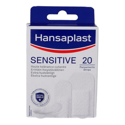 Hansaplast Sensitive Strips er en pakke med 20 hudvenlige plastre med en blød og åndbar sårpude