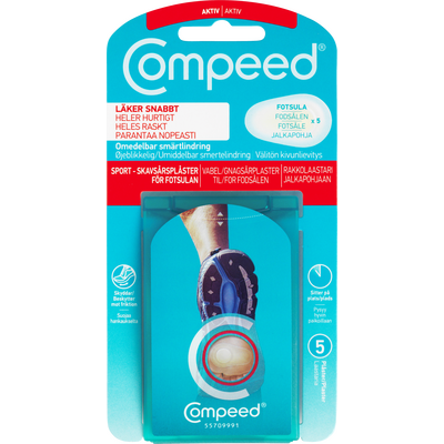 Denne variant af Compeed Sport vabelplaster er designet specielt til brug i forbindelse med større vabler på fodsålerne. Plastret påføres vablen og fungerer som et andet lag hud, der lindrer tryk og smerter samt beskytter mod vand, snavs og bakterier. Compeed fungerer uanset på hvilket stadie af en vabels cyklus, det påføres - men jo tidligere, det påføres, desto hurtigere vil helingen foregå.