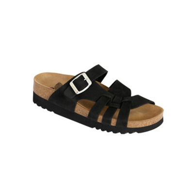 Scholl Carsol sundhedssandal i sort læder med Bioprint gummi sål