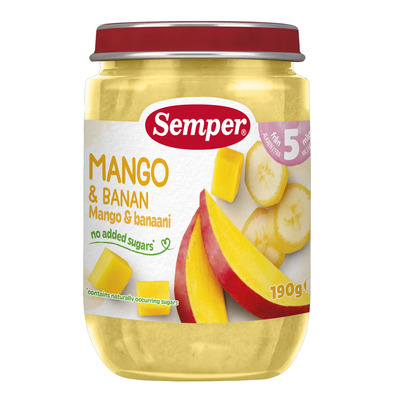 Semper Frugtpuré med Mango og Banan 5 mdr. Ø er en sund og velsmagende snack til spædbørn