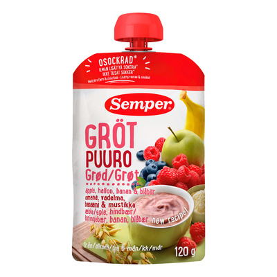 Semper Frugtgrød med Æble, Hindbær, Banan & Blåbær er designet til at være fleksibel både hjemme og på farten. Når I er ude, server grøden direkte på en ske. Dette hjælper med at udvikle barnets evne til at spise med ske, hvilket er en vigtig færdighed i dets tidlige udvikling. Hjemme kan du hælde grøden i en skål eller på en tallerken. Dette giver dit barn mulighed for at udforske maden og lære at spise selv, hvilket kan øge interessen og glæden ved måltiderne.