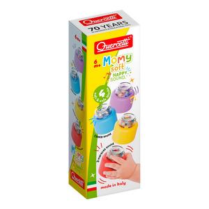 Quercetti Momy Soft er et sæt med 18 bløde byggeklodser i klare farver, designet til små hænder. To af klodserne har indbygget rangle, der skaber sjove lyde og giver en ekstra sansestimulerende oplevelse. De forskellige former og farver inspirerer barnet til at bygge og udforske, samtidig med at sanser og motorik styrkes. Klodserne er fremstillet i et fleksibelt og sikkert materiale.