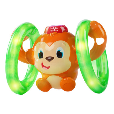 Bright Starts Roll & Light Abe er det ultimative interaktive legetøj, der inviterer dit barn til en leg fyldt med bevægelse og sjov. Med et enkelt tryk på hovedet sætter denne abe sig i bevægelse, hvilket tilskynder dit barn til at kravle, gå og løbe for at fange den. Denne legeoplevelse stimulerer ikke blot fysisk aktivitet, men også barnets koordinations- og reaktionsevner. Abens grønne hjul lyser op og spiller medrivende musik, hver gang den bevæger sig, hvilket tilføjer en ekstra dimension af sansestimulering til legen. Bright Starts Roll & Light Abe er designet til at skabe timevis af underholdning, mens den opmuntrer dit barn til at udforske og bevæge sig.