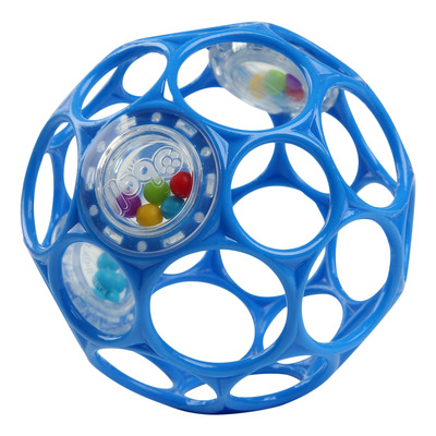 Denne rangle beriger dit barns liv med timevis af sjov og leg. Oball Rangle er en bold, hvor enkelte rum er udfyldt med farverige perler, som giver en fantastisk ranglelyd. Perlerne klikker mod hinanden når bolden rystes, kastes eller trilles over gulvet. Rangle-bolden har en flot blå farve, som stimulerer dit barns synssans, mens hullerne i forskellige størrelser udvikler dit barns finmotorik, da de er super nemme for selv helt små børnehænder at holde fast i.