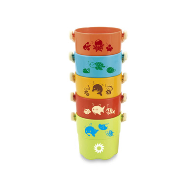 Med disse lege-spande fra Scandinavian Baby Products får dit barn uendelige muligheder for at styrke sin motorik på en sjov og legende måde. Spandene er lavet i 5 forskellige varianter, som kan stables ovenpå hinanden, væltes eller leges med enkeltvis - det er kun fantasien, der sætter grænser! Hver lege-spand fra dette sæt har desuden sin egen smukke og moderne farve samt et hyggeligt motiv med havets dyr, som medvirker til at stimulere dit barns synssans.