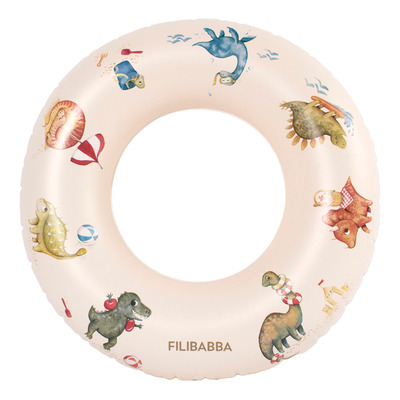 Filibabba Badering Alfie Dino Beach gør vandlegen endnu sjovere for de mindste. Den har et farverigt dinosaurprint med en padlende T-Rex, en svømmende plesiosaurus og en hyggelig triceratops. Baderingen pustes nemt op via en sikkerhedsventil, der kan trykkes ind for ekstra komfort. Den er fremstillet af slidstærkt PVC med en tykkelse på 0,25 mm og er både testet og godkendt efter europæiske sikkerhedsstandarder.