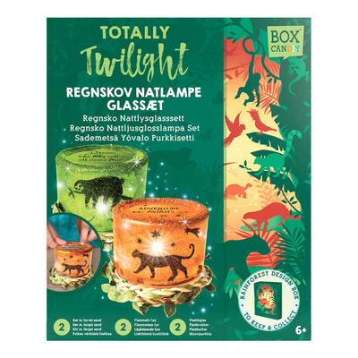 BOX CANDIY Night Light Jars - Totally Twilight Rainforest giver mulighed for at skabe en betagende natlys stemning med stjerneklare designs inspireret af regnskovens magi. Dette sæt er ideelt til at bringe en fortryllende atmosfære ind i ethvert rum, når som helst du ønsker det.