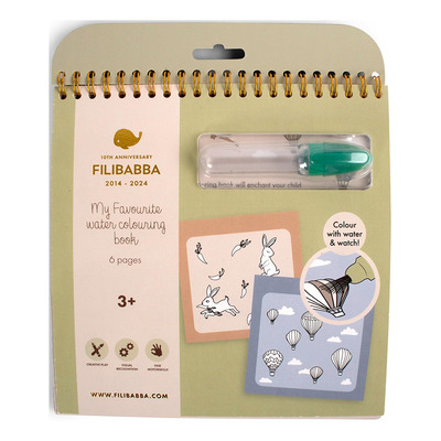 I anledning af Filibabbas 10-års-jubilæum introduceres Filibabba "Min Yndlings" Vandmalebog, som er en del af en eksklusiv limited edition kollektion. Denne vandmalebog har sider fyldt med poplære Filibabba-designs. Den smarte vandtusch, der følger med, eliminerer svineri og gør det nemt for børn at bringe siderne til live med farver, blot ved at tilføje vand. Med seks robuste papsider tilbyder denne bog en verden af kreativ leg, hvor børn kan udforske og farvelægge deres yndlingsdesigns.