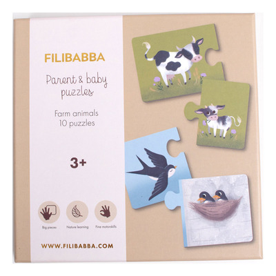 Filibabba Forældre og barn puslespil - Bondegårdsdyr styrker bånd og sørger for læring gennem leg