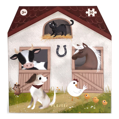 Filibabba Stort puslepil med 30 brikker - Bondegården er det perfekte valg for at styrke dit barns koncentration og finmotorik på en underholdende måde. Med motiver fra en farverig bondegård og 30 store brikker er dette puslespil ideelt til små hænder. Æsken er formet som en lade, der både pynter og opbevarer puslespillet sikkert. Velegnet til børn fra 3 år og op. Dette puslespil vil med sikkerhed bringe glæde til hele familien og tilskynde til kreativ tænkning og problemløsning.