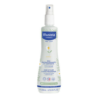Med den smarte Mustela Hair Styler & Skin Freshener kan du opfriske og pleje både hår og hud. Sprayen giver en mild, men frisk duft og efterlader huden blød. 97% af ingredienserne er af naturlig oprindelse, og produktet er dermatologisk testet.
