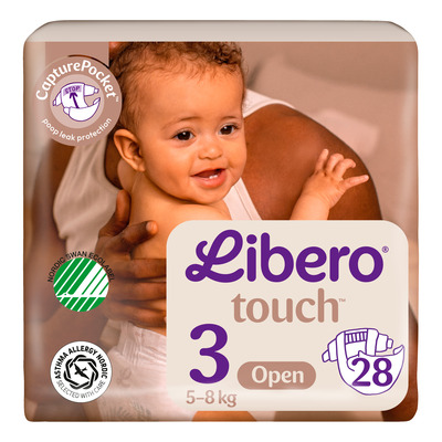 Libero Touch 3 Åben Ble 5-8 kg er en blød og hudvenlig ble, udviklet med fokus på komfort og lækagesikkerhed. Bleen har en afføringslomme bagtil, som hjælper med at forhindre lækage, samt en vådindikator, der gør det nemt at se, hvornår det er tid til at skifte. Den superabsorberende kerne holder barnet tørt i op til 12 timer og gør bleen velegnet til både dag og nat. Touch-serien er dermatologisk testet, anbefalet af Asthma Allergy Nordic og certificeret med Svanemærket.