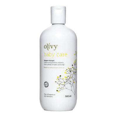 Med Olivy Baby Care kan du forebygge, at dit barns numse bliver rød, irriteret eller - i værste fald - får udslæt. Produktet er baseret på ren olivenolie blandet med en meget mild kalkopløsning. Olivenolien vil blødgøre og tilføre den rette naturlige mængde fugt til huden, samtidig med at den danner en beskyttende hinde mod fugten fra den våde ble.