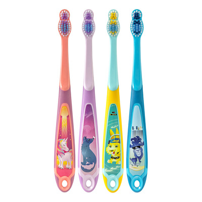 Tandbørsten har et ergonomisk håndtag, som er let for barnet at holde om, og et farverigt design, der gør tandbørstningen til en sjovere og mere motiverende del af morgen- og aftenrutinen. Derudover er der en tandpastamarkør på børstehovedet, som hjælper med at dosere den rette mængde tandpasta til børn.