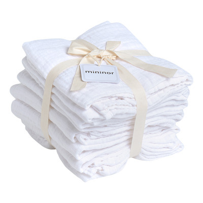 Gylpeklud, nusseklud, underlag eller skygge i barnevognen; anvendelsesmulighederne med stofbleerne fra Mininor er mange! De hvide stofbleer fra Mininor måler 70x70 cm og er derfor ideelle til flere forskellige formål. Selve stoffet er lavet af bomuld med dobbeltvævning, som sikrer en høj kvalitet og minimerer risikoen for, at stoffet rives itu. Stofbleerne er derudover hurtigt absorberende og tørrende.