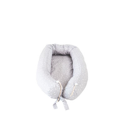 - Kombineret babynest, madras, bumper til vugge samt ammepude i ét