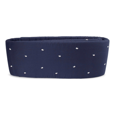 Filibabba Sengerand med hval-broderi kombinerer sikkerhed med stil i dit barns soveområde. Med sit charmerende design af broderede hvaler på en midnatsblå baggrund bringer denne sengerand en følelse af leg og glæde til ethvert børneværelse. Den er fremstillet af 100% GOTS-certificeret økologisk bomuld, der sikrer en blød og tryg ramme omkring din babys seng. Filibabba tilbyder også baby- og juniorsengetøj i Hvalen Christian-design.
