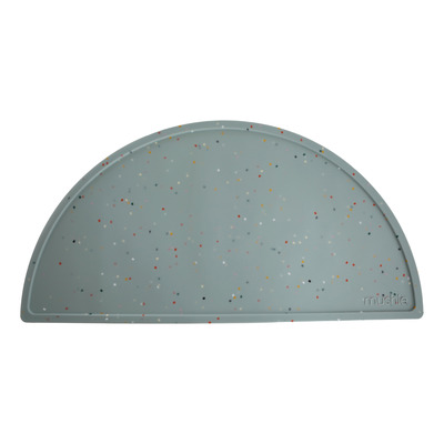 Mushie Silikone Dækkeserviet Cambridge Blue Confetti er et praktisk underlag til både spisning og kreative aktiviteter
