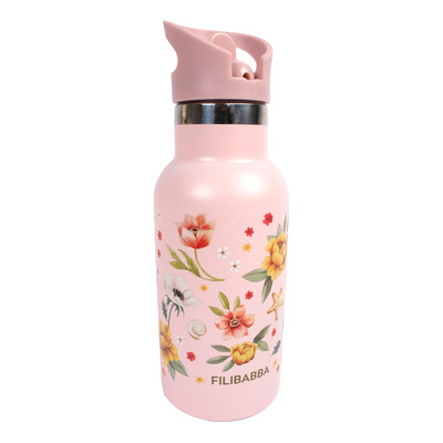 Filibabba Drikkeflaske i rustfrit stål Ocean Blossom er en perfekt flaske til de små, med smukt håndtegnet print