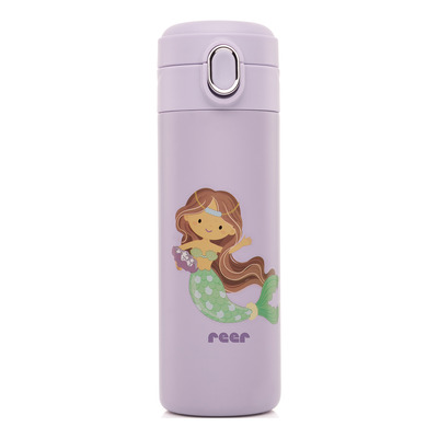 Reer Drikkedunk med sugerør Lilla er ideel til børn i børnehave, skole eller på ture. Den rummer 350 ml. væske og har et flot motiv med desmerdyr, som gør den ekstra attraktiv for børn. Drikkedunken har et praktisk sugerør, der automatisk kommer frem, når man trykker på knappen. Den er let at åbne, selv for små hænder, og gør det nemt for barnet at drikke selv.