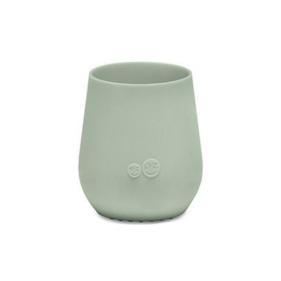 Tiny Cup fra EZPZ er en lille, åben drikkekop designet specielt til børn fra 4 måneder, som gradvist introduceres til at drikke selv. Den er udformet i simpelt design, belagt med BPA-, ftalat- og latexfri silikone, som både sikrer godt greb og er skånsomt mod gummer og nye tænder samt indeholder vægtet bund, som modvirker, at den skulle tippe.