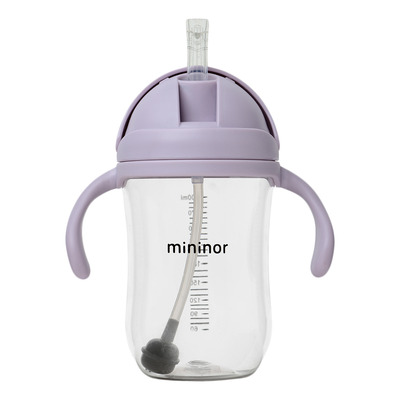 Mininor sugerørskop i lavendel farve har klart materiale og drypfrit sugerør