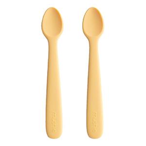 Mushie Silikone Skeer Pale Daffodil er en 2-pak med fodringsskeer i lækker kvalitet og sød gul farve