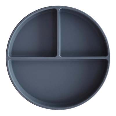 Mushie Silikone Tallerken Rumdelt Tradewinds har en sugekop under bunden, så tallerkenen ikke så nemt flytter sig