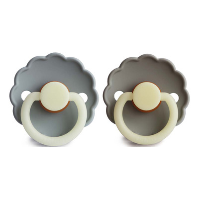 FRIGG Daisy Rund Latex French Gray Night/Portobello Night er en 2-pak med praktiske sutter i yndigt design