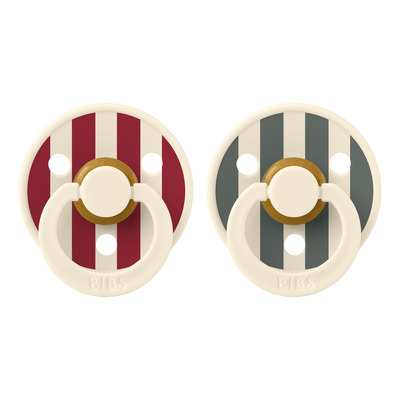 BIBS Studio Colour Block Latex Ruby Pine Mix kombinerer funktionalitet med skandinavisk design i denne 2-pak af kvalitetssutter. Selve sutten er fremstillet af naturgummilatex og er udstyret med en unik ventil, der sikrer, at luften slipper ud, så den tilpasser sig naturligt til babyens mundform. Denne egenskab understøtter en sund mundudvikling.