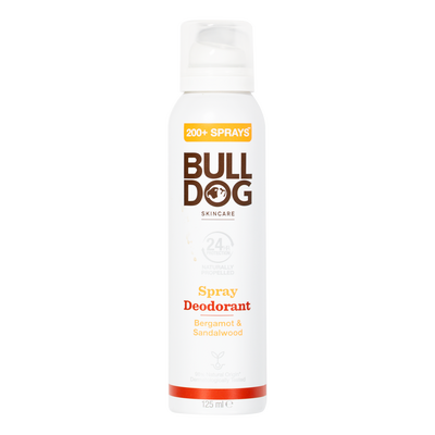 Bulldog Bergamot & Sandalwood Deodorant Spray er en naturlig deospray med frisk duft og 24 timers lugtkontrol