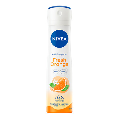 Nivea Fresh Orange Deospray er en forfriskende antiperspirant deodorant, der kombinerer pålidelig deodorantbeskyttelse med en livlig duft af appelsin. Denne deo spray sørger for en frisk hudfornemmelse, der varer hele 48 timer. Den er udviklet til at efterlade din hud både frisk og tør, og dens unikke formel sikrer, at du føler dig komfortabel og velduftende hele dagen.