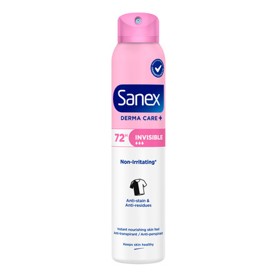 Sanex Derma Care+ Invisible 72H Deo Spray er en antiperspirant med langvarig friskhed uden mærker på tøj