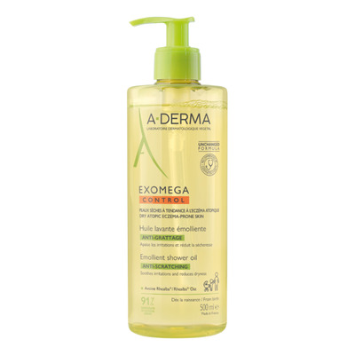 Exomega Control Shower Oil fra A-Derma er en nærende vaskeolie fremstillet specielt til atopisk hud. Den milde formel er blandt andet rig på fugtgivende glycerin og rhealba® havrekimekstrakt, der virker dulmende på rødme og kløe. Aktivstoffet Filaxerine® hjælper desuden med at genopbygge hudens naturlige barrierefunktion.