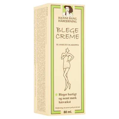Blegecremen fra Hanne Bang er udviklet specielt til dig, som foretrækker at blege uønsket, mørk hårvækst i stedet for at fjerne den. Cremen kan anvendes både i ansigtet og på kroppen og giver et resultat, som holder i op til 2-4 uger. Selve behandlingen er enkel at udføre og tager kun 15 minutter.