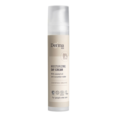 Derma Eco Day Cream er en mild og nærende dagcreme lavet med rene, økologiske og aktive ingredienser, der er med til at fugte, berolige og pleje huden. Cremen indeholder bl.a. økologisk kokosolie og aloe vera, der fugter og blødgør huden samt E-vitamin og agurkeekstrakt, som beskytter og beroliger huden. Ansigtscremen trænger hurtigt ind uden at virke fedtet på huden. Den er velegnet til alle hudtyper også til sart og sensitiv hud.