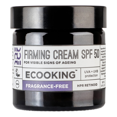 ECOOKING Firming Cream SPF50 FF er en ansigtscreme med opstrammende effekt og uden tilsat parfume. Den indeholder stamcelleekstrakter, som fjerner uønskede hudceller og forlænger hudens funktion. Grønalgeekstrakt styrker huden, mens HPR, en ny og mild form for retinoid, stimulerer cellefornyelsen og reducerer fine linjer.