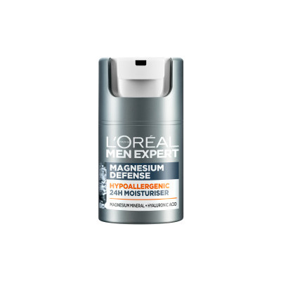 Men Expert Magnesium Defense 24H Moisturiser fra L'Oreal er en fugtighedscreme til sensitiv hud. Denne hypoallergene formel er specielt udviklet til mænd, der døjer med sensitiv hud fra ydre påvirkninger, fx forureninger, stress og barbering.