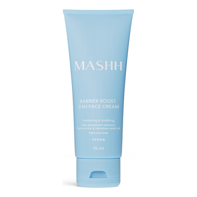 MASHH Barrier Boost 24h Face Cream er en nærende ansigtscreme uden tilsat parfume, der tilfører intensiv fugt og styrker hudens naturlige barriere. Den er beriget med ceramider, som genopretter hudens beskyttende funktion, og hyaluronsyre, der tilfører fugt i op til 24 timer. Cremen har en let, men rig konsistens, som absorberes hurtigt og efterlader huden blød og behagelig uden at fedte.