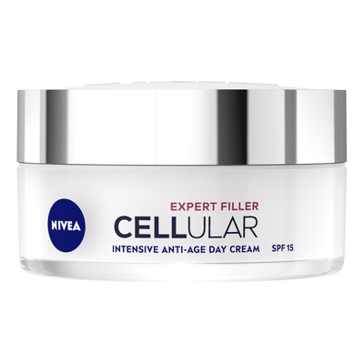 Nivea Cellular Expert Filler Anti-Age Day Cream SPF15 er en dagcreme, som indeholder en kombination af kraftfulde anti-age aktive stoffer, der bekæmper tab af fasthed og volumen i huden. Dagcremen er beriget med ren foliksyre, som giver hudcellerne nyt liv og hyaluronsyre, som hjælper med at udfylde rynker, glatte og hydrere huden. Derudover indeholder den også SPF 15, som giver UVA- og UVB-beskyttelse for at forhindre tidlig ældning af huden.